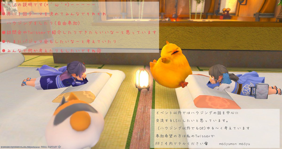 「#PCFFF14」または「#PCFチョコボハウジング」 でおねがいします