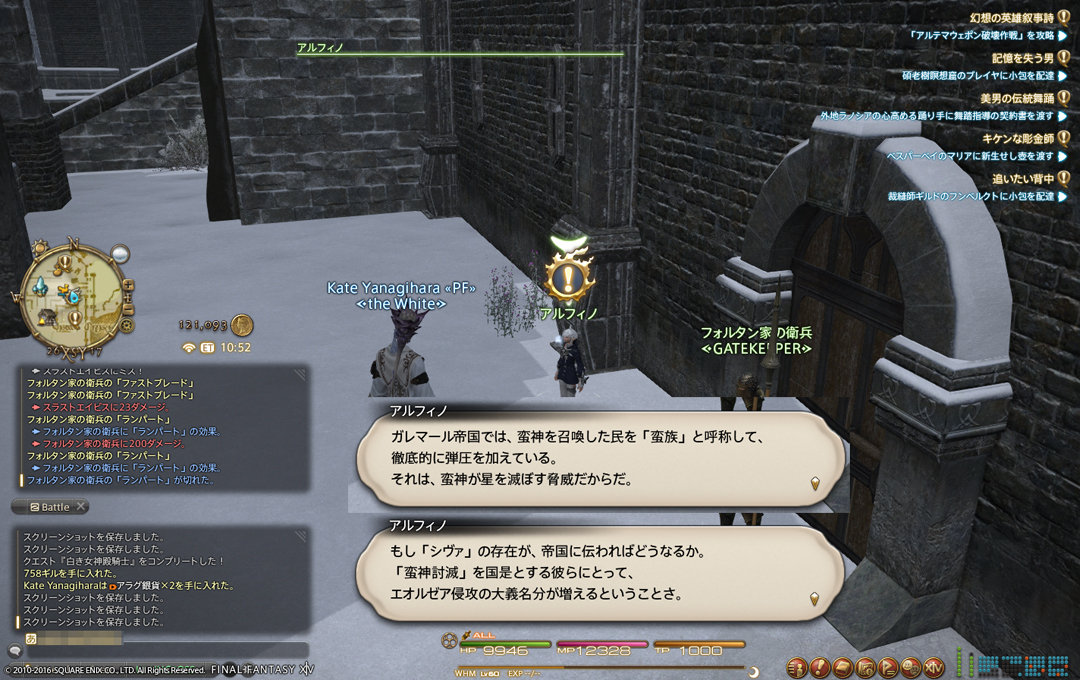 画像を確認するあー緊張したねヤレヤレと思って外に出たらアルフィノからきな臭い話をされましたの図
