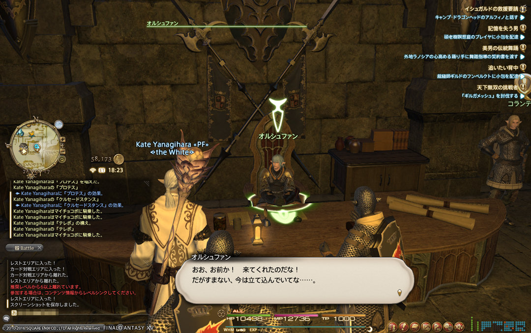 アルフィノに呼び戻されて石の家へ行くとルキアさんがおり、クルザス中央高地にて既に一度目のぶつかり合いがあったことを教えてくれます オルシュファン様とかドユリモン卿が心配。