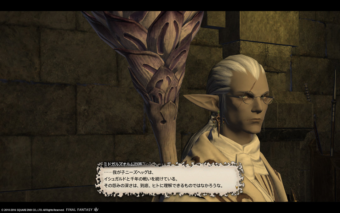 で、会議が進んで今回襲ってきた竜たちの目標が 以前イシュガルドの英雄が奪い取った『ニーズヘッグ』という竜の片目の眼球であるという事がわかります。