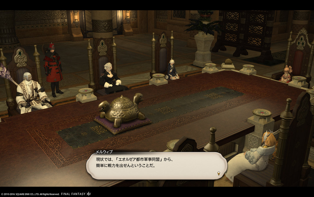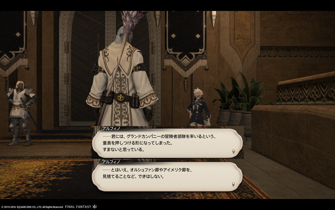 画像を確認する会議の後一応謝ってくれるアルフィノ。なーに構わんよいつもの事です