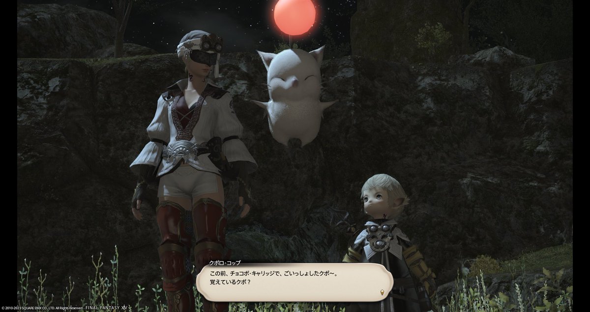 …と、目が覚めたらチョコボキャリッジの中。親切なおじさんと愛想のない双子ちゃん、それから周りには見えない悪戯モーグリちゃんもいましたね。おじさんの飲み物をラッパ飲みしやがりました。これもちっとも覚えてなかった。