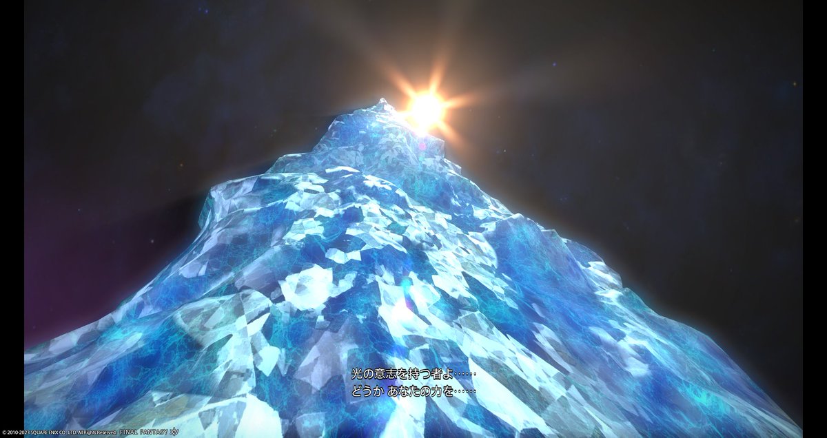 バトル後、落ちていたクリスタルを拾うと不思議な空間へ。ハイデリンの声を聴きます。星を滅びから救うために光のクリスタルを集めて闇を払えと。