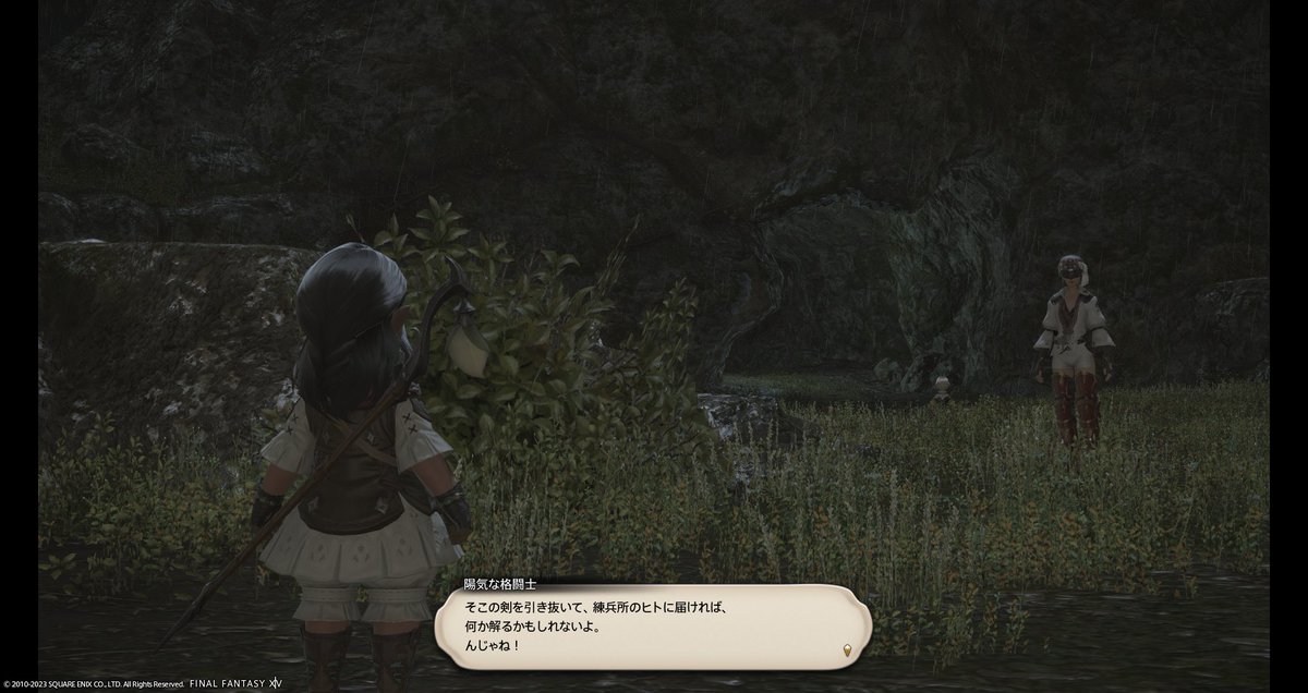 ここからはつよくてニューゲーム。ミューヌさんの知り合いが手伝いを欲しがっているとのことでバノック練兵所へ。装備チェックを受けた後、黒衣森に出没するという不審者の捜索を頼まれました。イクサル族にしてはこちらの動きが読まれている、と。