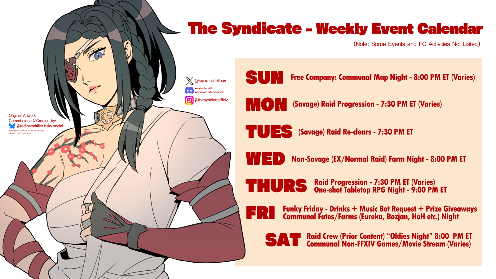 Hello! Interested in joining if you’re still recruiting! I’ve played the game on and off since Dec. 2013, but have played almost every day for the past 2-3 years. Definitely interested in joining events! Especially since the schedule shown works super well with my work schedule. I’m still a sprout when it comes to savage and EX raiding, but highly interested in learning whenever learning parties are available. I main SCH and currently studying what I can for it from the Balance.