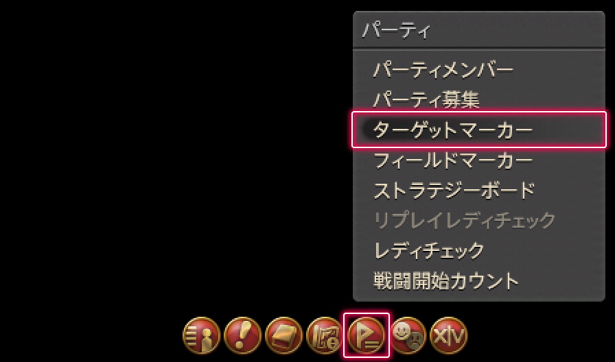メインコマンドのパーティから、ターゲットマーカーを選択します。