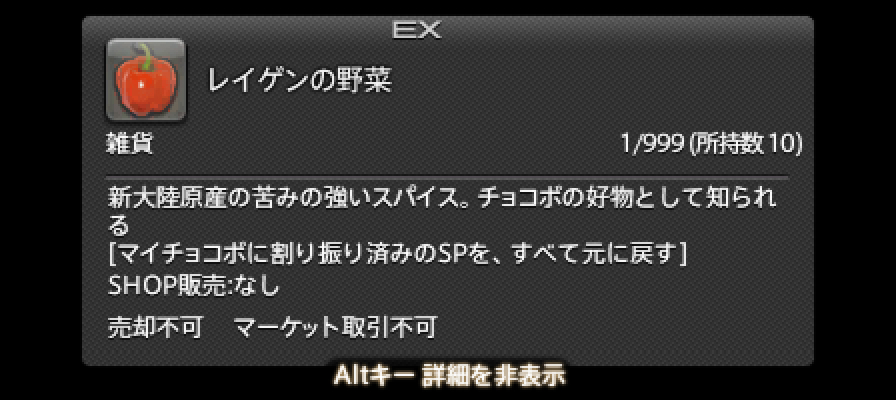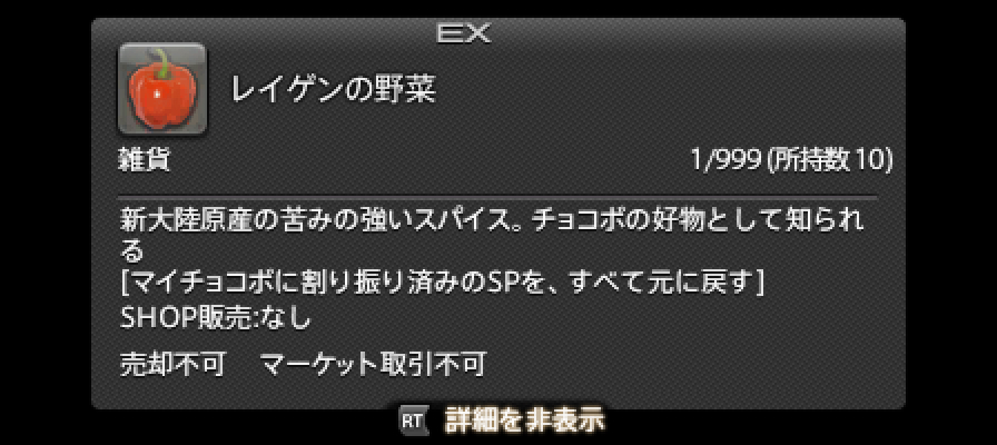 レイゲンの野菜を使えば、スキルポイントを割り振る前の状態に戻すことができるので、最初からスキルポイントを振りなおすことができます。